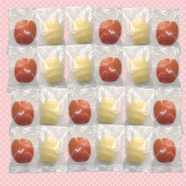 青森りんごを4等分にカットし1切れ毎に個包装した商品です。賞味期限は製造日より14日間(要冷蔵)